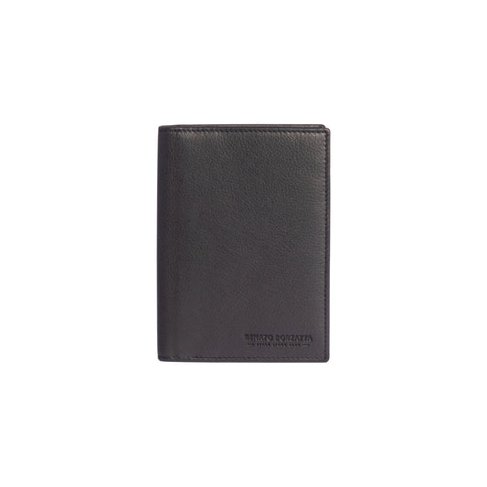 RB10722A | Porta Documenti/Passaporto in Vera Pelle pieno fiore con leggera grana. Colore Nero. Dimensioni da chiuso: cm 10 x 14 x 1