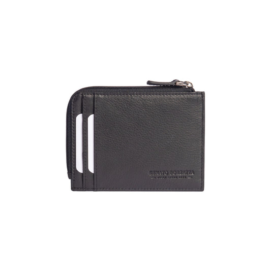 RB10793A | Porta Carte/Documenti con chiusura lampo e Protezione RFID in Vera Pelle pieno fiore con leggera grana. Colore Nero. Dimensioni: cm 12 x 9 x 0.5