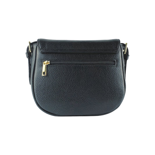 RB1002A | Genuine Leather Shoulder Bag Made in Italy with removable leather shoulder strap and attachments with shiny gold metal buckles - Black color - Dimensions: 26 x 20 x 10 cm