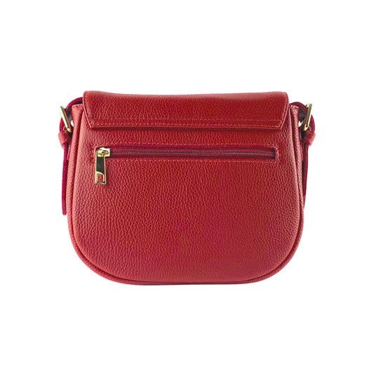 RB1027V | Women's rounded crossbody bag in genuine leather Made in Italy. Removable and adjustable leather shoulder strap. Polished Nickel Accessories - Red Color - Dimensions: 25 x 15 x 9 cm