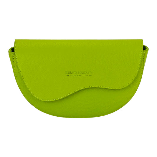RB1027AD | Women's rounded crossbody bag in genuine leather Made in Italy. Removable and adjustable leather shoulder strap. Accessories Polished Nickel - Lime color - Dimensions: 25 x 15 x 9 cm