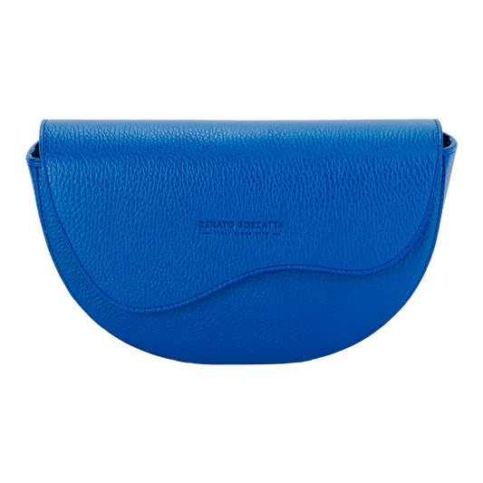 RB1027CH | Women's rounded crossbody bag in genuine leather Made in Italy. Removable and adjustable leather shoulder strap. Polished Nickel Accessories - Royal Blue Color - Dimensions: 25 x 15 x 9 cm
