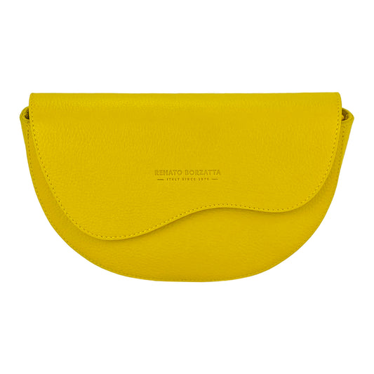 RB1027R | Women's rounded crossbody bag in genuine leather Made in Italy. Removable and adjustable leather shoulder strap. Polished Nickel Accessories - Yellow Color - Dimensions: 25 x 15 x 9 cm