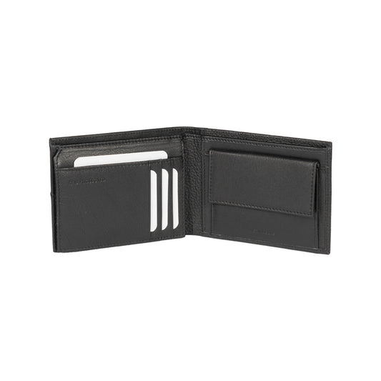K11403AB | Men's wallet in genuine full grain leather, with light grain. Black colour. Coin pocket. Dimensions when closed: 12.5 x 9.3 x 1 cm. Packaging: Rigid bottom/lid gift box