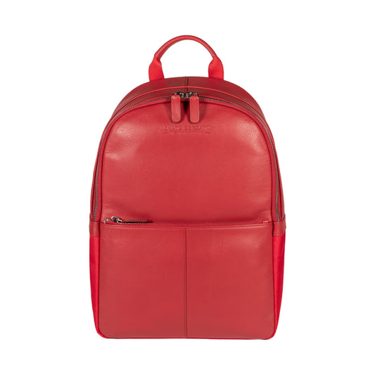 RB1018AM | Genuine Leather Double Compartment Women's Backpack Made in Italy with adjustable shoulder straps. Gunmetal metal accessories - Paprika color - Dimensions: 26 x 30 x 14.5 cm