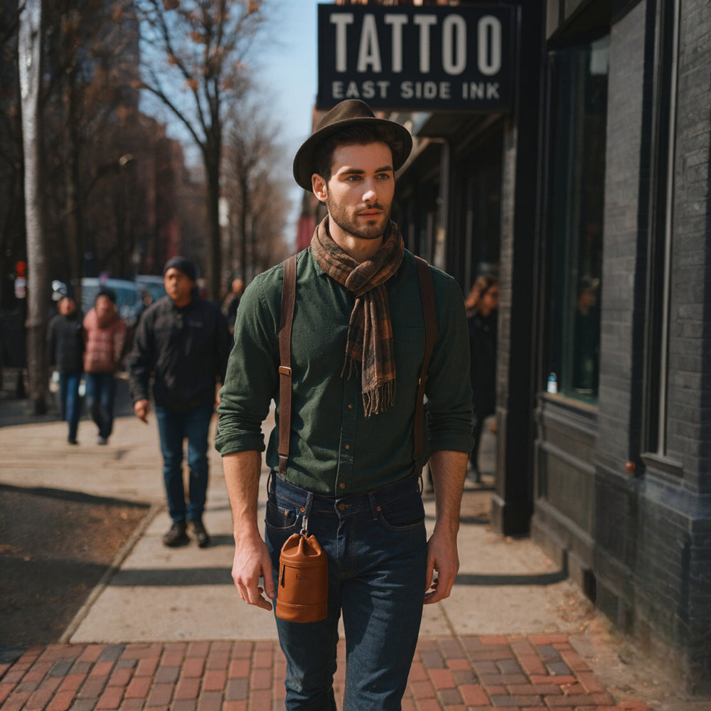 Accessorio dal Design Esclusivo, curato nei minimi dettagli. Il suo design Minimalista mette in risalto la texture naturale della pelle e la parte superiore si chiude con una coulisse. L’ intramontabile Stile Heritage che si trasforma in Stile moderno.