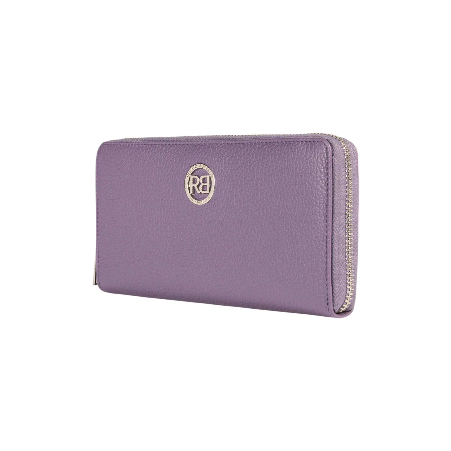 RB1081SY | Portafogli Donna con chiusura lampo Made in Italy in Vera Pelle grana Dollaro. Colore Viola. Dimensioni: cm 20 x 10 x 2,5