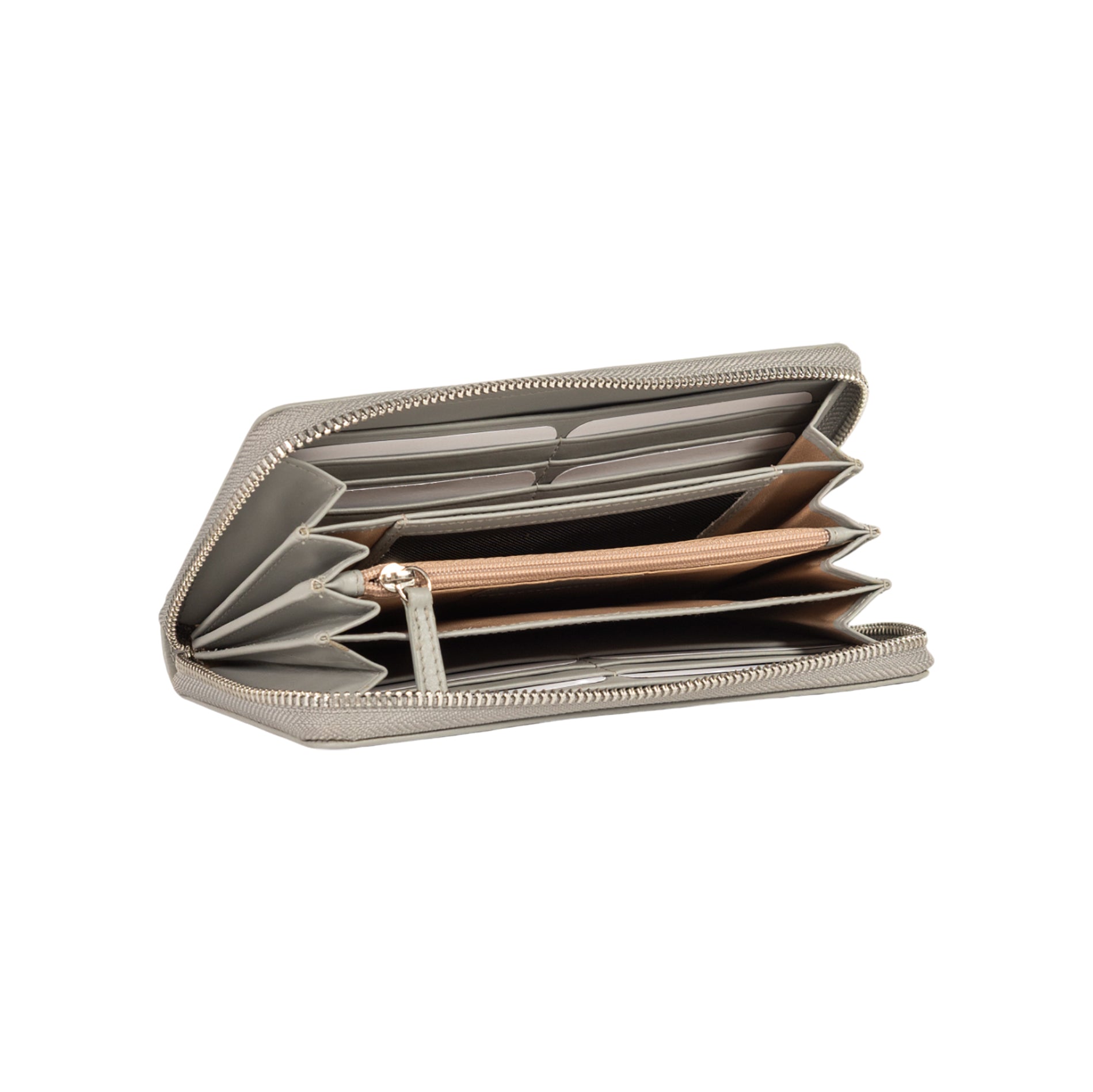 RB1084SF | Portafogli Donna con chiusura lampo Made in Italy in Vera Pelle Liscia Opaca. Colore Grigio. Dimensioni: cm 20 x 10 x 2,5