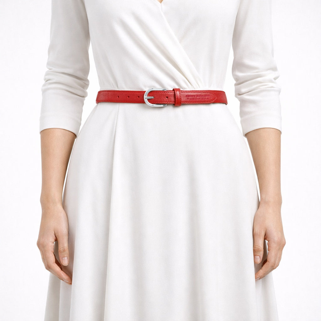 RB4016V | Cintura Donna Made in Italy in Vera Pelle Saffiano. Fibbia in finitura Argento Lucido. Colore Rosso. Dimensioni: cm 115 x 2,5 x 0,5 (giro vita cm 100)