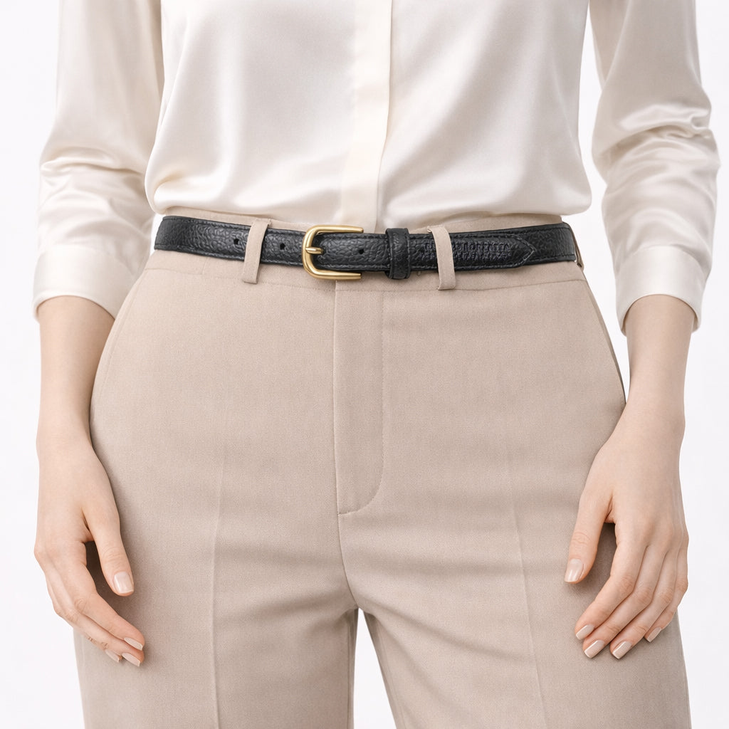 Dotata di una fibbia dalla forma leggermente arrotondata con finitura Oro Lucido, che aggiunge un tocco Luminoso e Sofisticato, valorizzandone la linea Armoniosa. Il logo impresso a caldo sulla punta rappresenta un segno distintivo di qualità e autenticità. Versatile e Funzionale, questa cintura è pensata per una donna che ama accessori eleganti, curati nei dettagli e capaci di esprimere stile, qualità e artigianalità italiana.