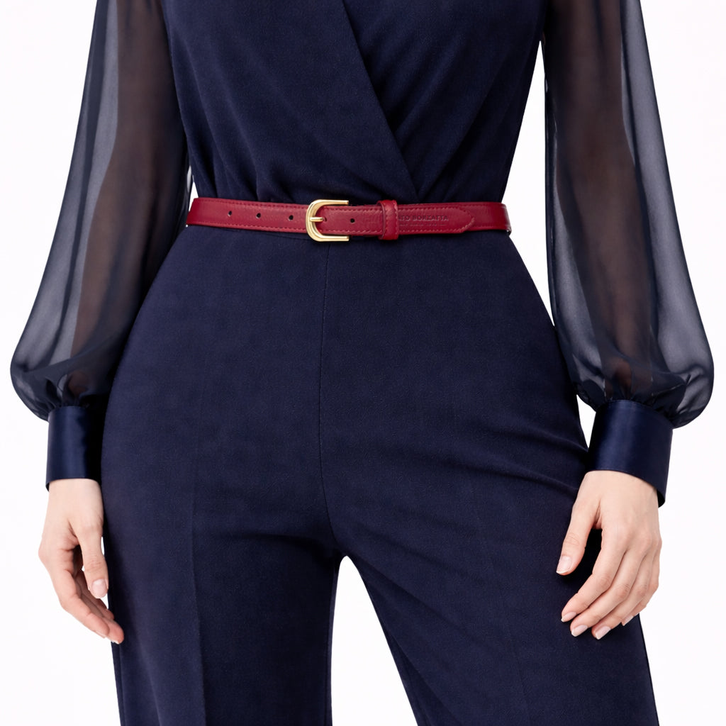 RB4021Q | Cintura Donna Made in Italy in Vera Pelle grana Dollaro. Fibbia in finitura Oro Lucido. Colore Rubino. Dimensioni: cm 115 x 2,0 x 0,5 (giro vita cm 100)