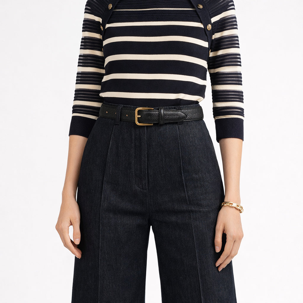 Dotata di una fibbia dalla forma rettangolare con angoli leggermente arrotondati in finitura Oro Lucido, che aggiunge un tocco Luminoso e Sofisticato, valorizzandone la linea Armoniosa. Il logo impresso a caldo sulla punta rappresenta un segno distintivo di qualità e autenticità. Versatile e Funzionale, questa cintura è pensata per una donna che ama accessori eleganti, curati nei dettagli e capaci di esprimere stile, qualità e artigianalità italiana.