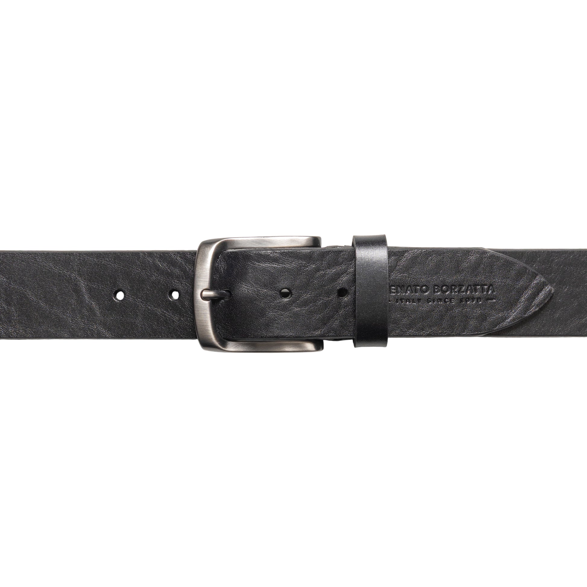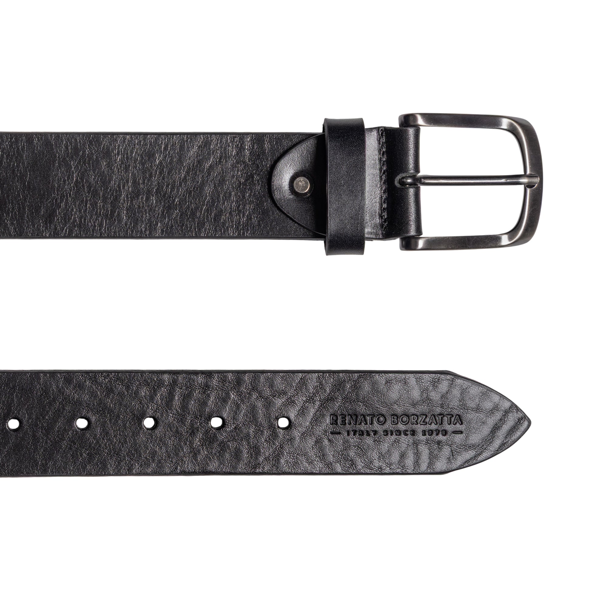 RB4027A | Cintura Uomo Made in Italy in Vero Cuoio Conciato al Vegetale. Fibbia in finitura Canna di Fucile Satinato. Colore Nero. Dimensioni: cm 125 x 4,0 x 0,5 (giro vita cm 110)