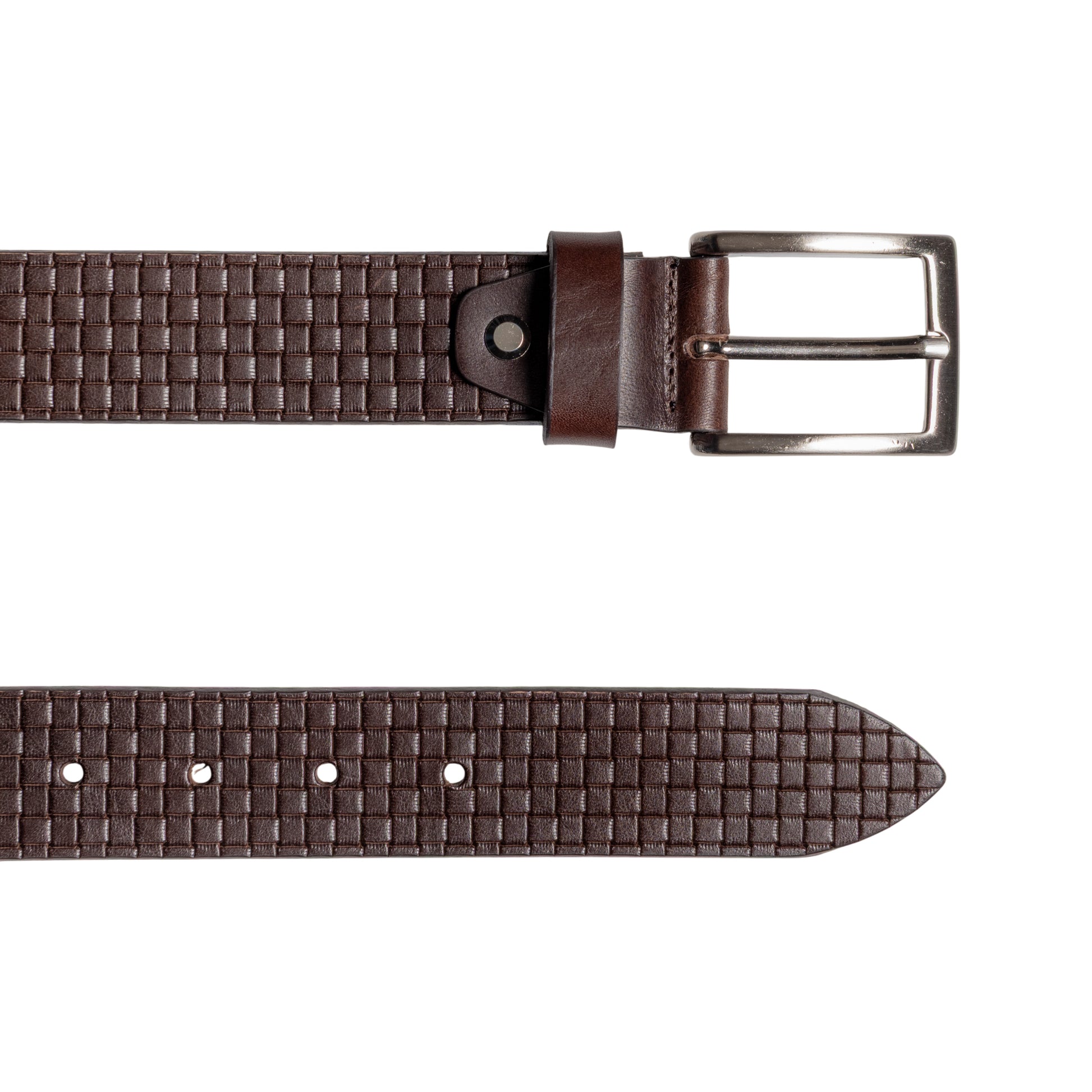 RB4028B | Cintura Uomo con Stampa Allover Made in Italy in Vero Cuoio Conciato al Vegetale. Fibbia in finitura Argento Satinato. Colore Testa Moro. Dimensioni: cm 125 x 3,5 x 0,5 (giro vita cm 110)